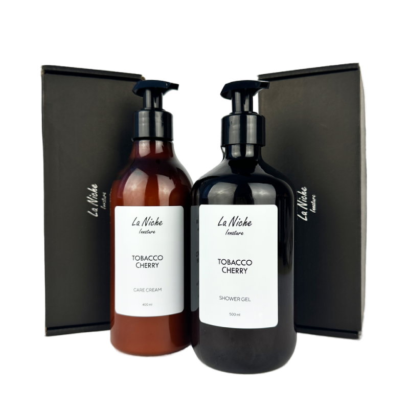 В набор Tobacco Cherry входит натуральный гель для душа и парфюмированный крем для тела и рук. Гель для душа эффективно и деликатно очищает кожу, а натуральный крем для тела и рук питает и увлажняет, оставляя на коже легкий аромат с нотами вишни и цветов табака. Верхние ноты: ваниль, древесные ноты Средние ноты: листья табака, бобы тонка Базовые ноты: цветок табака, пряности.